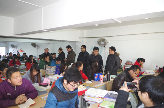 各位领导和老师走进考研教室和同学们亲切交谈,鼓励大家积极备考,并预祝各位同学在即将到来的2014年研究生入学考试中取得好成绩。慰问过程中,各位领导和老师为广大备考同学发放了精心准备的慰问品。