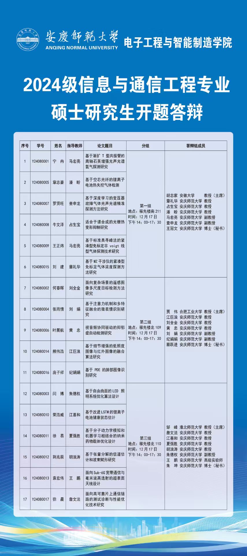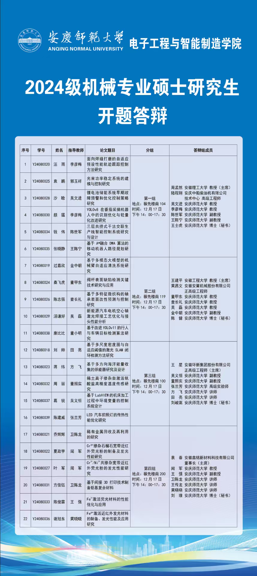 电子工程与智能制造学院2024级硕士研究生开题报告安排表
